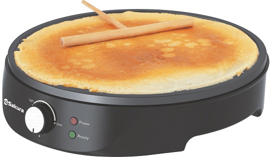 Мощность 1200 Вт, фиксированная панель диаметром 30 см, антипригарное покрытие, максимальная температура 240˚, регулируемый термостат, 2 световых индикатора. Комплектация: лопатка, распределитель теста.