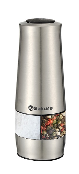Мельница электрическая для соли и перца, 2 раздельных контейнера, прочный и договечный керамический механизм, регулировка степени помола, работа от 6*ААА (1,5В)