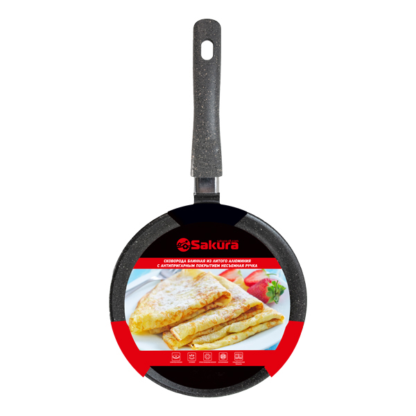 Материал: литой алюминий; ручка несъемная бакелит.; диаметр: 22 см; диаметр дна: 19,6 см; толщина дна: 4,5 мм; толщина стенок: 3,5 мм; высота стенок: 1,8 см; тип покрытия: 2-слойное антипригарное Quantum2. Подходит для всех типов плит, кроме индукционных. Можно мыть в посудомоечной машине. Блинная сковорода имеет низкий борт и удобную ручку, благодаря чему легко переворачивать и снимать блины. Благодаря антипригарному покрытию блины всегда легко снимаются со сковороды и не пригорают, даже при выпекании без использования масла. Ручка не нагревается в процессе приготовления, что обеспечивает максимальный комфорт.
