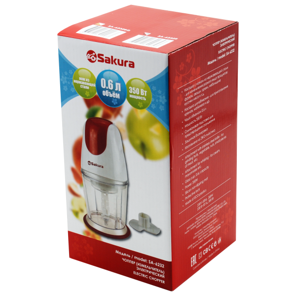 Чоппер, 350 Вт, пластиковая чаша 0,6 л, 2 насадки, силиконовая подставка для предотвращения скольжения во время работы, защитная блокировка от случайного включения.