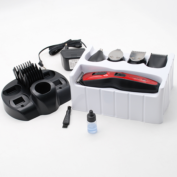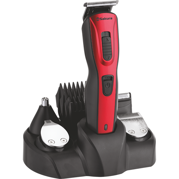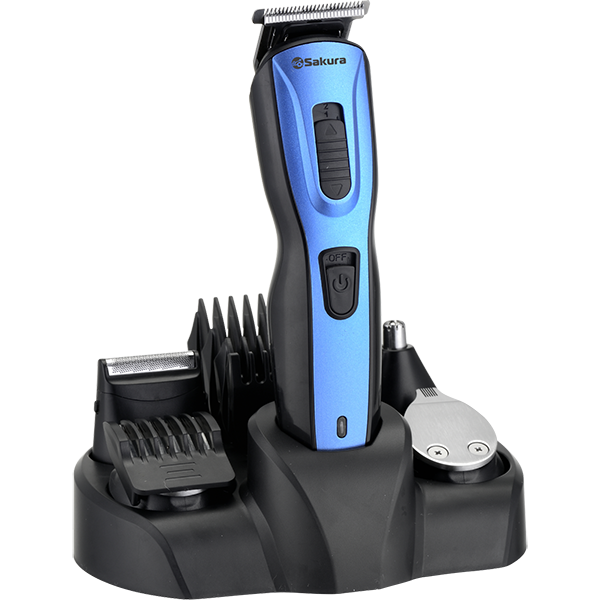 10 - 5 гребней (3-12 мм), насадка-бритва, круглая насадка для носа и ушей, 3 плоские насадки для стрижки (точечная, узкая, широкая) |