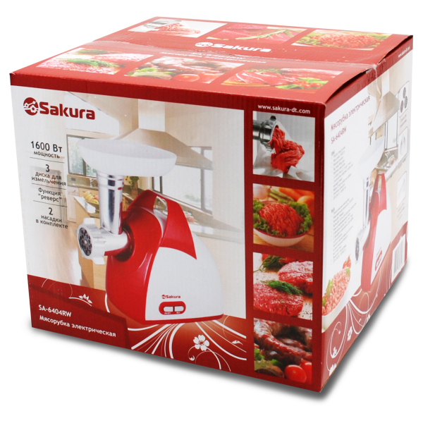 Мясорубка электрическая, 1600 Вт, с функцией реверса, насадками "кеббе" и для приготовления сосисок, с тремя режущими дисками в комплекте
