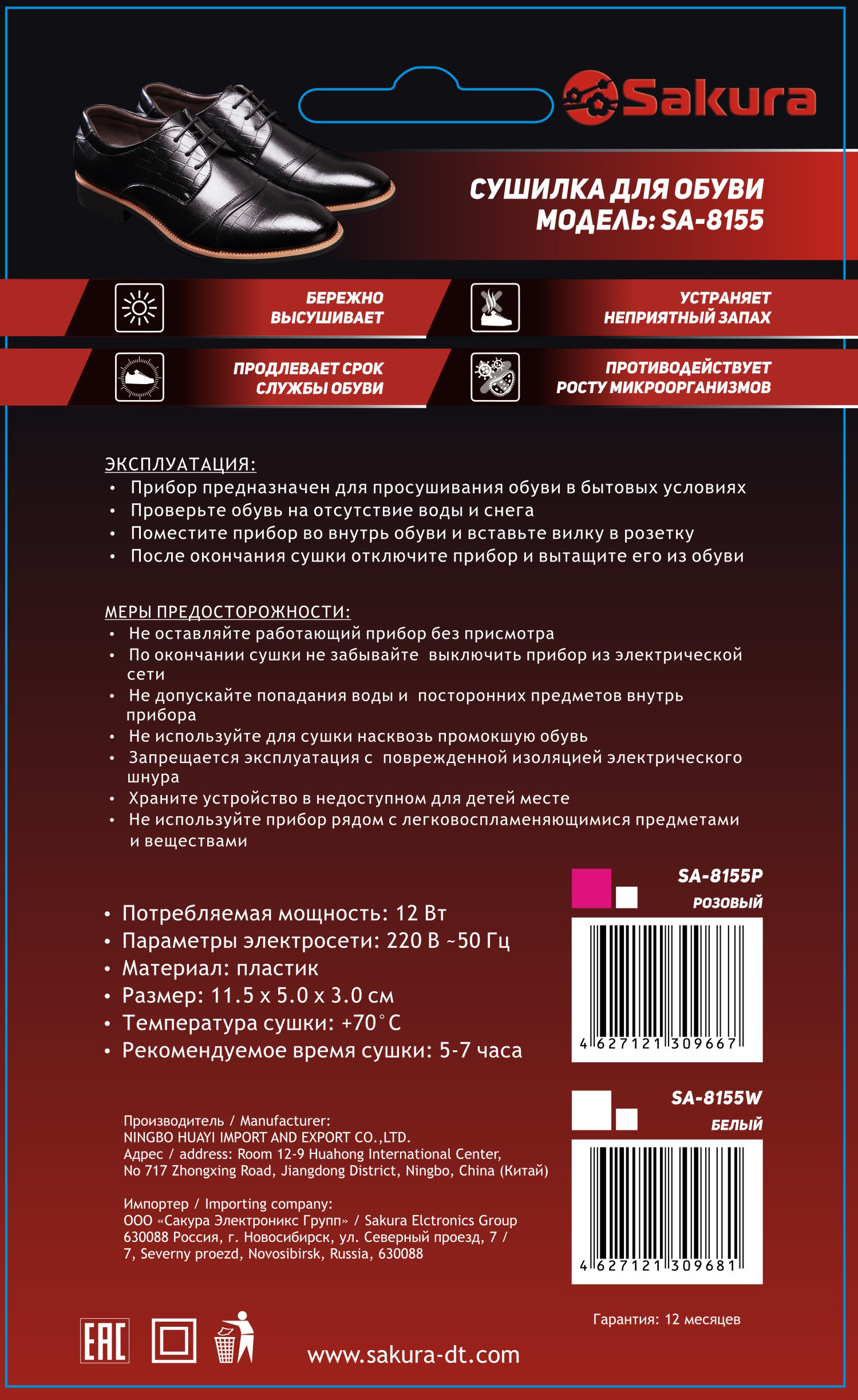 SA-8155P - 4627121309674, SA-8155W - 4627121309698 |