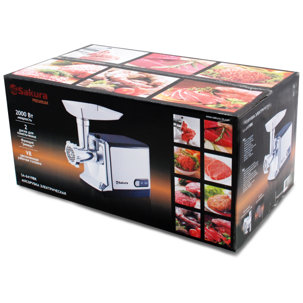 Мясорубка электрическая Premium класса, 2000 Вт, с функцией реверса, 2 режущих дисками в комплекте.