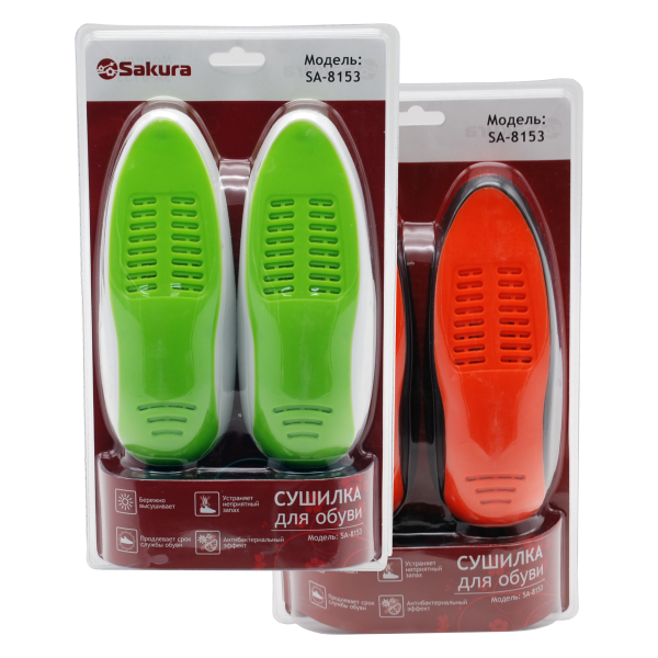 Сушилки для обуви электрические, антибактериальный эффект, устранение неприятного запаха. Мощность 16 Вт, температура сушки 55-60°C.