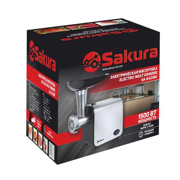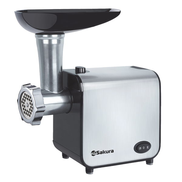 Мясорубка электрическая, 1600 Вт, функция реверс, корпус из эко-пластика и нержавеющей стали, пластик.лоток, металл. шнек, толкатель, нож из нерж.стали, металл диска для измельчения (5 мм), насадка для сосисок, отключение при перегреве.