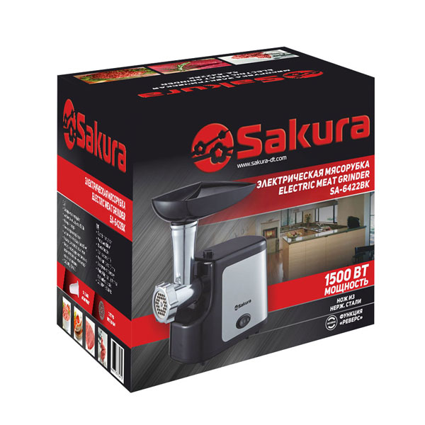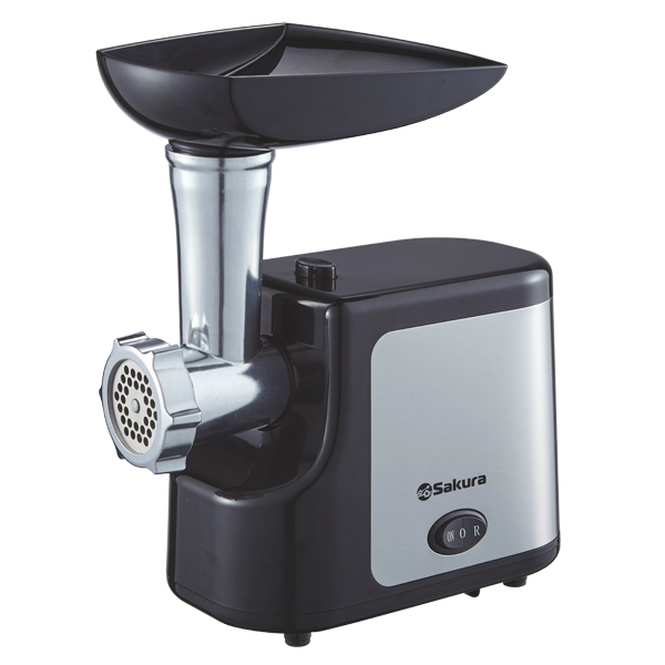 Мясорубка электрическая, 1600 Вт, функция реверс, корпус из эко-пластика и нержавеющей стали, пластик.лоток, металл. шнек, толкатель, нож из нерж.стали, металл диска для измельчения (5 мм), насадка для сосисок, отключение при перегреве.
