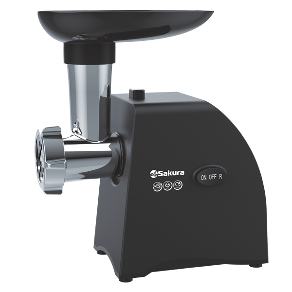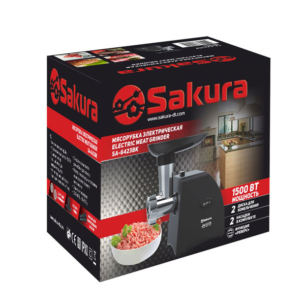 Мясорубка электрическая, 1500 Вт, функция "реверс", корпус из эко-пластика, пластик.лоток, метал. шнек, толкатель, нож из нерж.стали, металл диски для измельчения (5 мм и 7 мм), отключение при перегреве. Аксессуары: насадки для кеббе и для сосисок, отключение при перегреве.