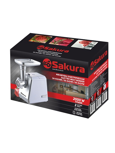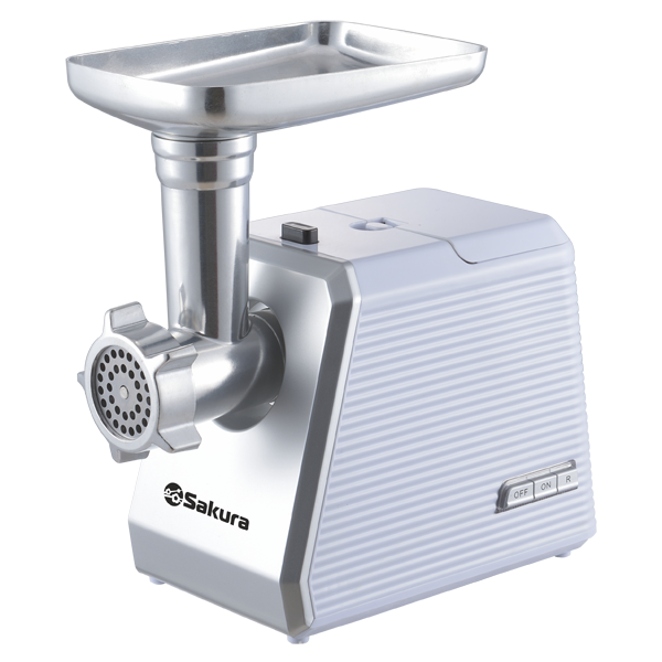 Мясорубка электрическая, 2000 Вт, функция реверс, корпус из эко-пластика, вместительный металл.лоток для продуктов, металл. шнек, толкатель, нож из нерж.стали, 2 металл диска для измельчения (5 мм, 7 мм), отсек для хранения насадок, отключение при перегреве. Аксессуары: насадка для кеббе и для приготовления сосисок.