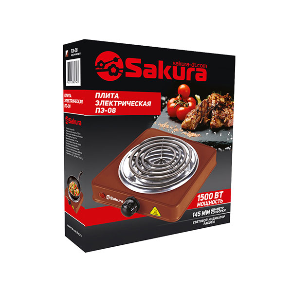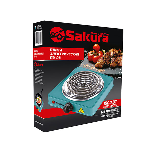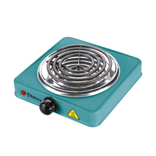 Мощность 1500 Вт, 1 конфорка 145 мм, антипригарное эмалевое покрытие, спиральный нагревательный элемент, регулируемый термостат, индикатор работы, цвет корпуса: бирюзовый / коричневый