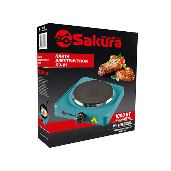 Мощность 1000Вт, 1 конфорка диаметром 154 мм, дисковый нагревательный элемент из высококачественного чугуна, плавная регулировка температуры, защита от перегрева, световой индикатор работы, прорезиненные ножки.
