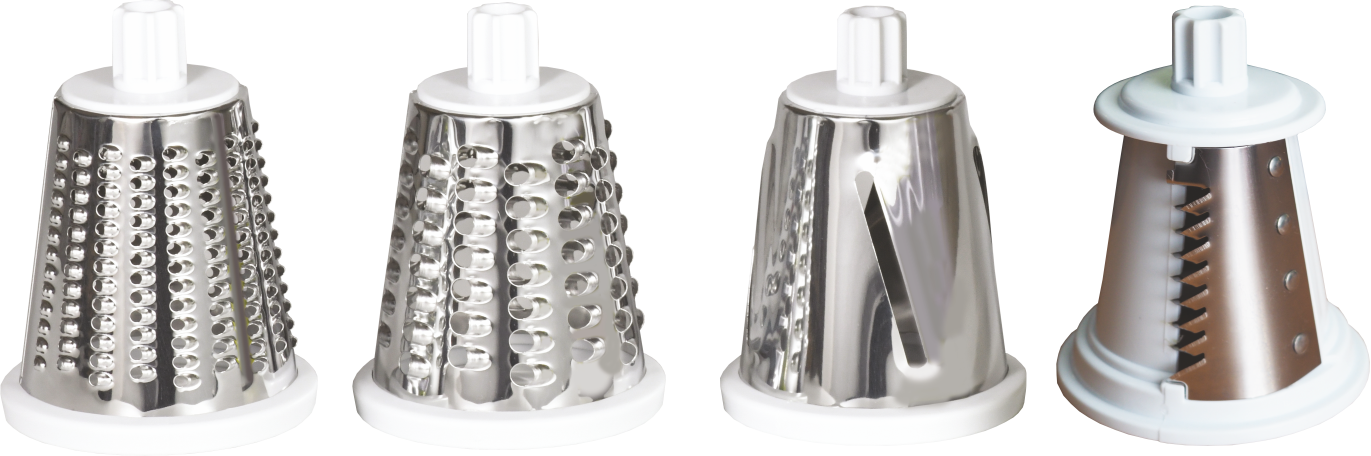 4 (мелкая терка, средняя терка, слайсер, насадка для нарезки соломкой) |