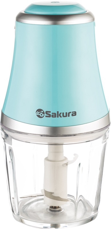 Чоппер (измельчитель), мощность 400 Вт, объем чаши 0,6л, материал чаши - стекло, 3 лезвия из нержавеющей стали, силиконовая подставка, одна скорость, низкий уровень шума (менее 60ДБ), цвет: голубой / розовый / белый.