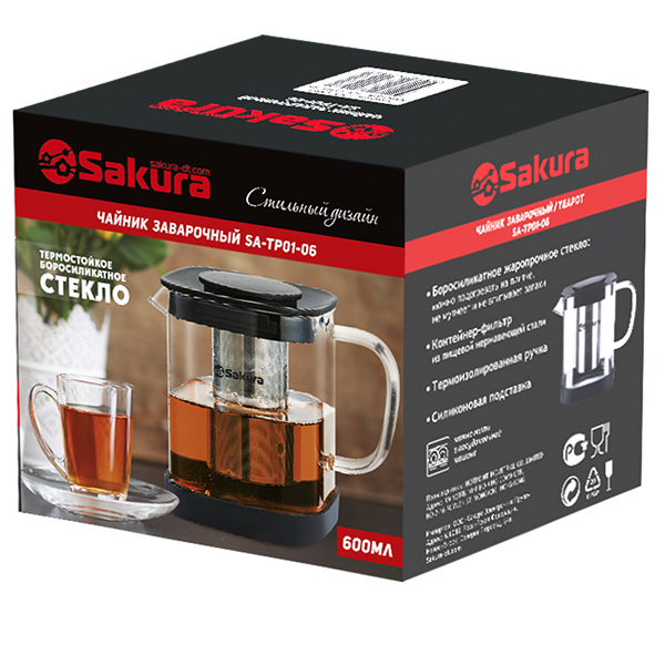 Объем 600 мл. Высококачественное жаропрочное боросиликатное стекло. Съемный фильтр из нержавеющей стали 18/10 марки. Силиконовая подставка. Жароупорная бакелитовая крышка. Подходит для использования на газовых плитах. Экологически чистые материалы