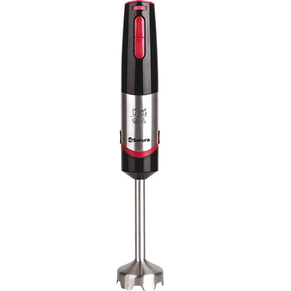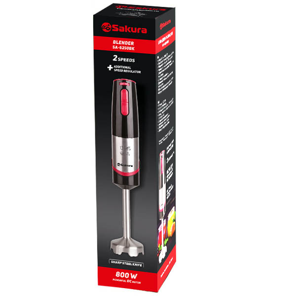 800 Вт, погружной, 2 скорости работы + дополнительная регулировка, мощный и тихий DC мотор, лезвия из нержавеющей стали, насадка из нержавеющей стали. Цвет: черный/красный