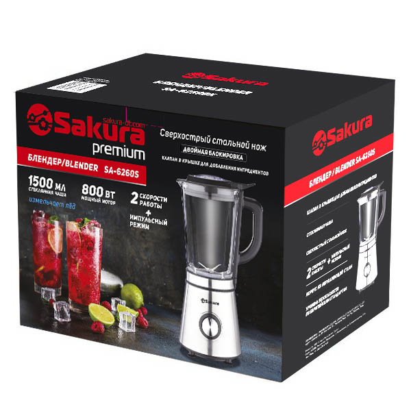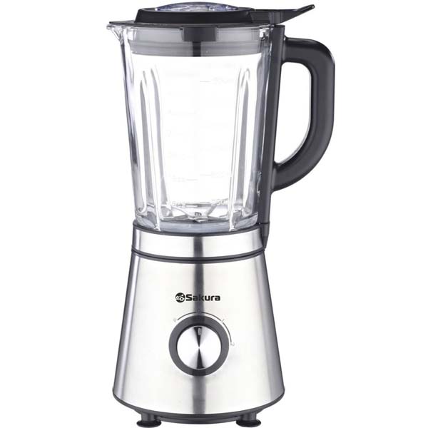 Блендер настольный, 400 Вт, 0.6л, 1 скорость (кнопка фиксируется), нескользящие ножки, клапан в крышке для добавления ингредиентов, блокировка при неправильной сборке.