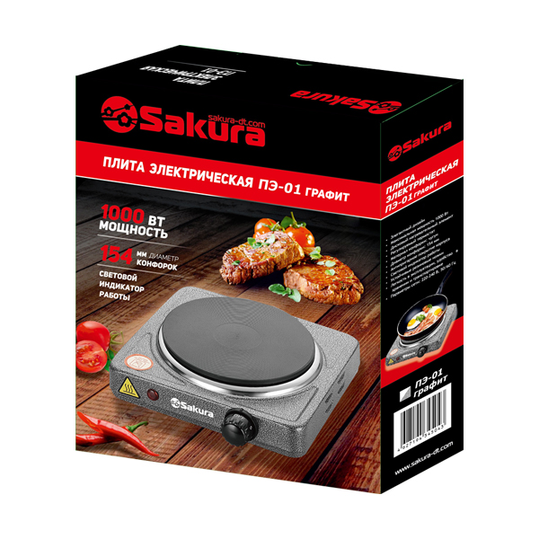 Мощность 1000Вт, 1 конфорка диаметром 154 мм, дисковый нагревательный элемент из высококачественного чугуна, плавная регулировка температуры, защита от перегрева, световой индикатор работы, прорезиненные ножки. Прочное антипригарное эмалевое покрытие корпуса, с которого легко удаляются загрязнения. Длина сетевого шнура – 0,9м. Срок службы прибора – 5 лет. Цвет – графит.