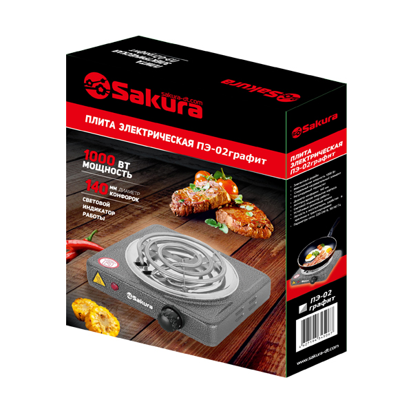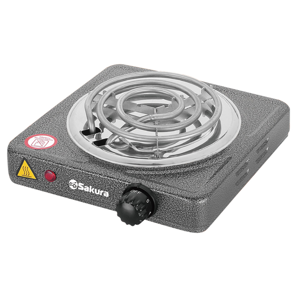 Мощность 1000 Вт, 1 конфорка 140 мм, антипригарное эмалевое покрытие, спиральный нагревательный элемент, регулируемый термостат, индикатор работы, цвет корпуса: графит.