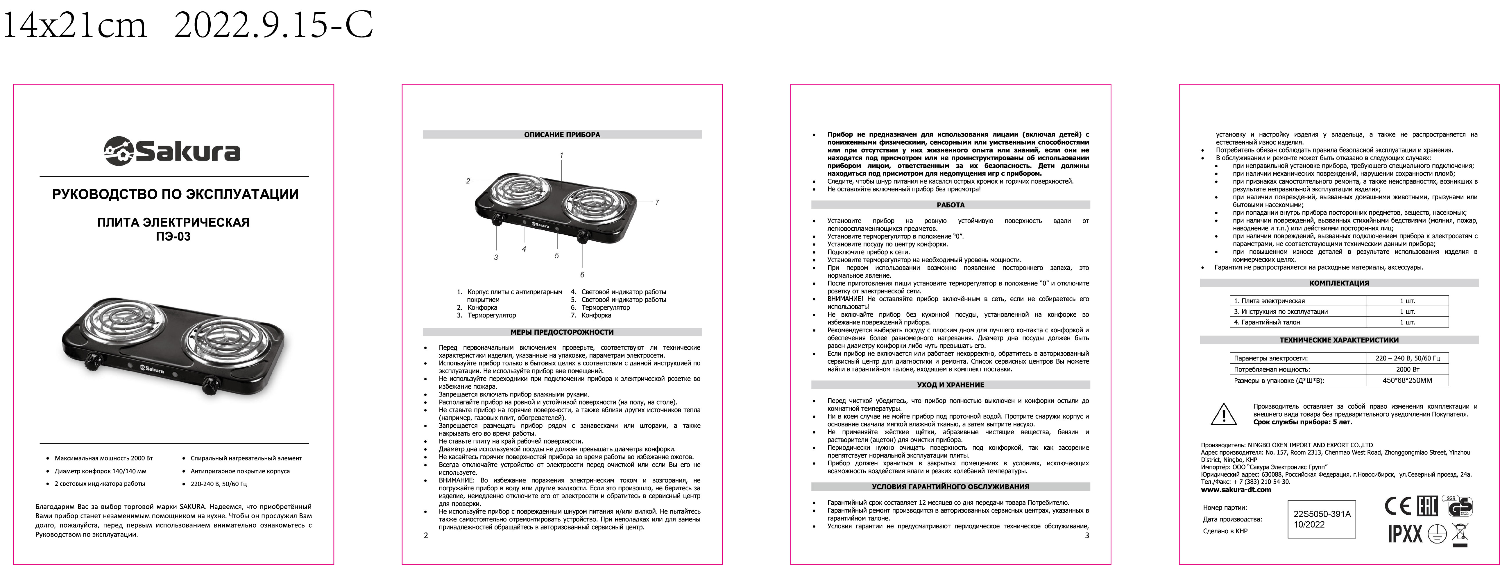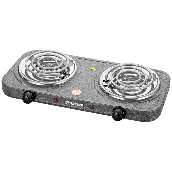 Мощность 2000 Вт, 2 конфорки 140/140 мм, антипригарное эмалевое покрытие, спиральный нагревательный элемент, регулируемый термостат, индикатор работы, цвет корпуса: графит.