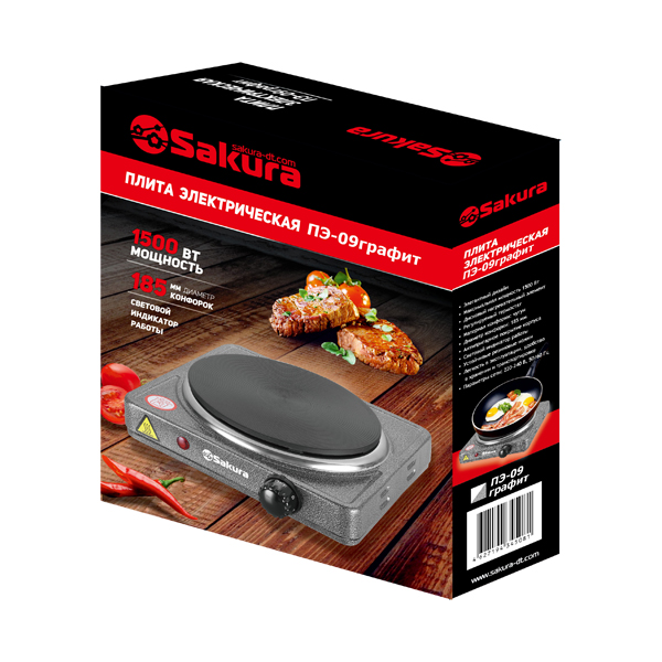Мощность 1500Вт, 1 конфорка диаметром 185 мм, дисковый нагревательный элемент из высококачественного чугуна, плавная регулировка температуры, защита от перегрева, световой индикатор работы, прорезиненные ножки. Прочное антипригарное эмалевое покрытие корпуса, с которого легко удаляются загрязнения. Длина сетевого шнура – 0,9м. Срок службы прибора – 5 лет. Цвет – графит.
