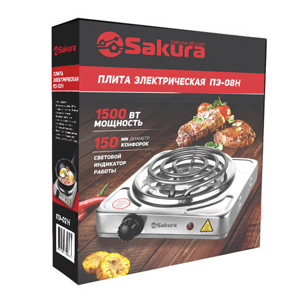 Мощность 1500Вт, 1 конфорка 150 мм, прочный корпус из нержавеющей стали, спиральный нагревательный элемент, регулируемый термостат, индикатор работы, длина шнура - 1м, цвет корпуса: нерж.сталь/черный