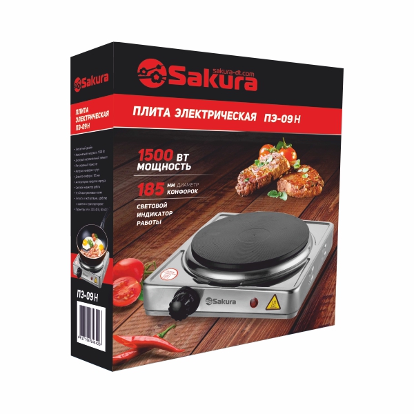 Мощность 1500Вт, 1 конфорка диаметром 185 мм, дисковый нагревательный элемент из высококачественного чугуна, плавная регулировка температуры, защита от перегрева, световой индикатор работы, прорезиненные ножки. Прочный корпус из нержавеющей стали, с которого легко удаляются загрязнения. Длина сетевого шнура – 1м. Срок службы прибора – 5 лет. Цвет – нерж.сталь/черный