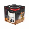 Аэрогриль, 1300 Вт, стеклянная чаша с решеткой 5 л, таймер на 60 минут, регулировка температуры 30-180С, сенсорное управление, LED дисплей, готовит без масла или с минимальным его использованием. Автоматическое отключение питания при извлечении чашы, 10 предустановленных программ меню. Подходит для всех блюд, которые готовятся в духовке. Шнур резиновый 1 м. Цвет корпуса белый.