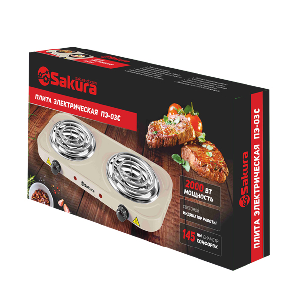 Мощность 2000 Вт, 2 конфорки 145/145 мм, антипригарное эмалевое покрытие, спиральный нагревательный элемент, регулируемый термостат, индикатор работы, цвет корпуса: бежевый. Прорезиненный шнур 90см. Размер 45х24х5см.