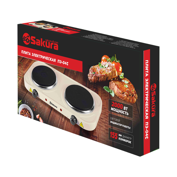 Мощность 1000+1000Вт, диаметр конфорок 154/154 мм, дисковый нагревательный элемент из высококачественного чугуна, плавная регулировка температуры, защита от перегрева, световой индикатор работы, прорезиненные ножки. Прочное антипригарное эмалевое покрытие корпуса, с которого легко удаляются загрязнения. Длина сетевого шнура – 0,9м. Срок службы прибора – 5 лет. Цвет – бежевый. Размер: 44,5х25х6см.