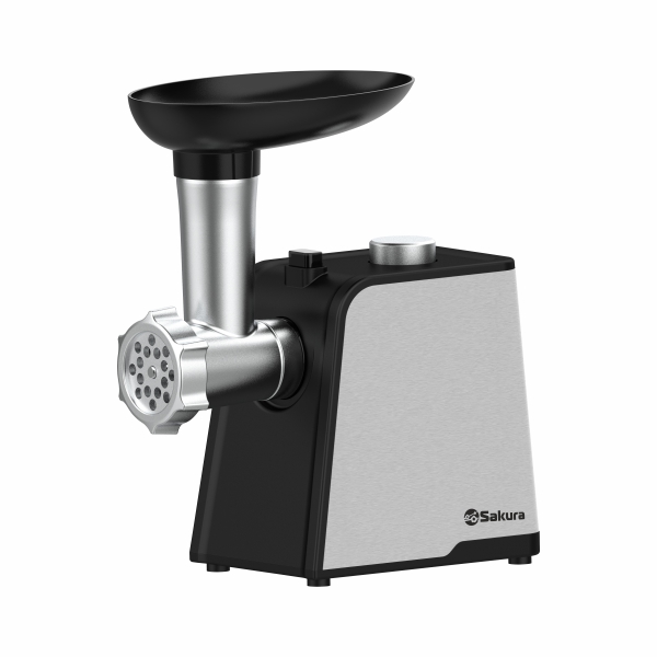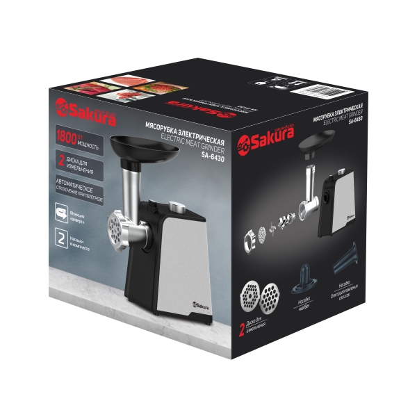 Мясорубка электрическая 1800 Вт, функция "реверс", корпус нержавеющая сталь+пластик, пластиковый лоток, металический шнек, толкатель, нож из нержавеющей стали, металл диски для измельчения (5 мм и 7 мм), отключение при перегреве. Аксессуары: насадки для кеббе и для сосисок. Производительность: 0.9кг/мин. Цвет: нержавеющая сталь/черный. Длина шнура 0,8м.