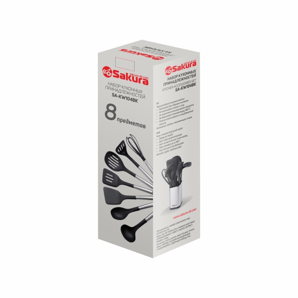 Набор кухонных принадлежностей 8 шт, нейлон. Состав набора: стакан для хранения, половник, ложка, лопатка, лопатка с прорезями, шумовка, пресс для картофеля, венчик.