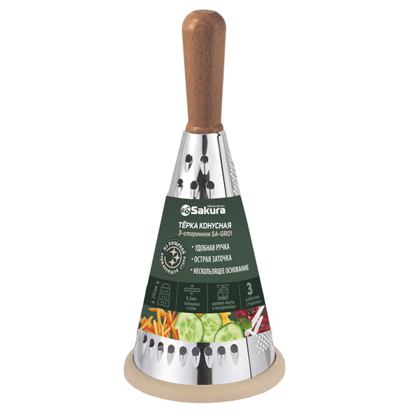 Универсальная трехсторонняя терка, поможет быстро шинковать, крупно или мелко натереть овощи, фрукты и другие продукты. Высота 27см, толщина металла 0,3мм.Нескользящее прорезиненное основание предотвращает скольжение во время использования и защищает поверхность от повреждений.Необходимо вымыть сразу после использования. Рекомендуется замачивать терку в теплой воде. Не рекомендуется использовать для чистки металлические щетки, губки или мочалки. Можно мыть в посудомоечной машине.