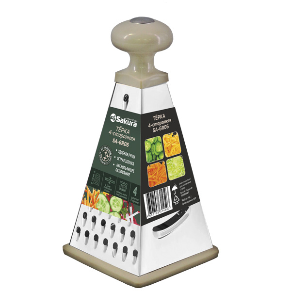 Универсальная конусная, 4-х сторонняя терка, поможет быстро шинковать, крупно или мелко натереть овощи, фрукты и другие продукты. Высота 23см, толщина металла 0,3мм.Нескользящее прорезиненное основание предотвращает скольжение во время использования и защищает поверхность от повреждений.Необходимо вымыть сразу после использования. Рекомендуется замачивать терку в теплой воде. Не рекомендуется использовать для чистки металлические щетки, губки или мочалки. Можно мыть в посудомоечной машине.
