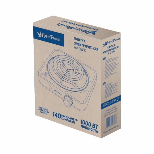 Мощность 1000Вт, 1 конфорка 132мм, антипригарное эмалевое покрытие, спиральный нагревательный элемент, регулируемый термостат, индикатор работы. Длина шнура: 75см.