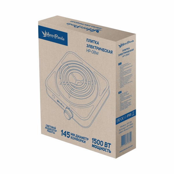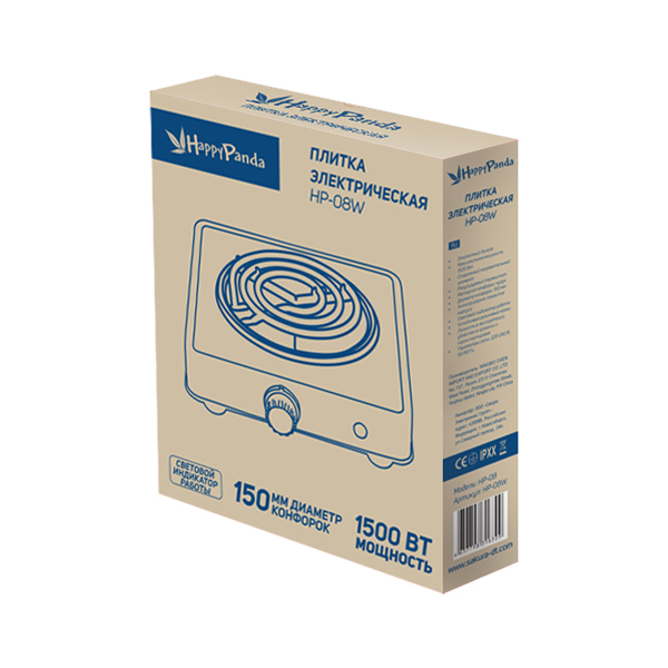 Мощность 1500Вт, 1 конфорка 150мм, антипригарное эмалевое покрытие, спиральный нагревательный элемент, регулируемый термостат, индикатор работы. Длина шнура: 65см.