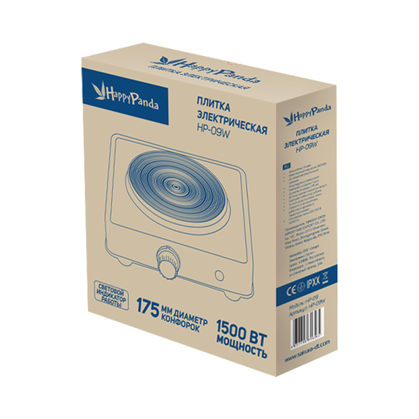 Мощность 1500Вт, 1 конфорка 175мм, антипригарное эмалевое покрытие, дисковый нагревательный элемент, регулируемый термостат, индикатор работы. Длина шнура: 65см.