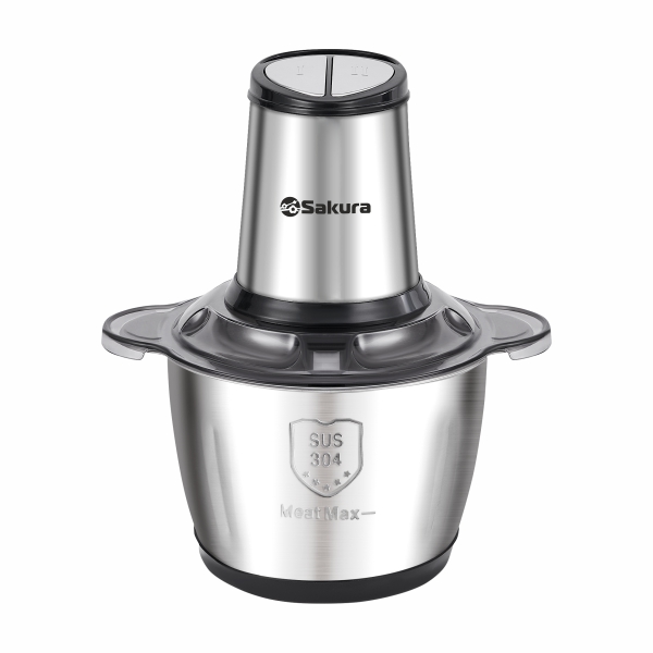 Чоппер. Мощность 800 Вт, 3л, чаша из нержавеющей стали, 4 лезвия из нержавеющей стали, 2 скорости работы, прорезиненная подставка, включение нажатием, цвет: черный/серебро.
