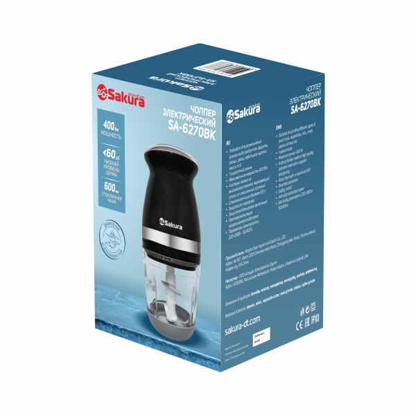 Мощность 400 Вт, 0,6л, стеклянная чаша, двойной нож из нержавеющей стали, 1 скоростой режим, прорезиненная подставка, включение нажатием.