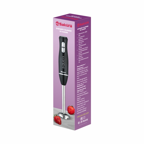 Блендер погружной 600 Вт, тип - погружной, мощный DC мотор, 2 скорости работы, острые лезвия из нержавеющей стали, насадка из нержавеющей стали