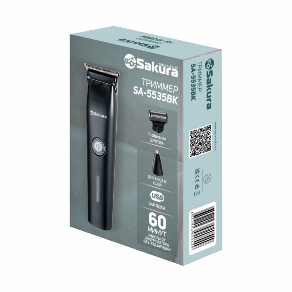 Триммер унив. 3в1: триммер для носа/ушей, бритва и насадка для подравнивания, аккумулятор литиевый, USB кабель, 2 часа зарядки, 60 минут использования, цвет: черный.