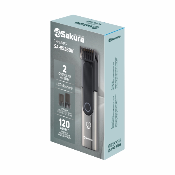 Триммер для стрижки бороды, усов, висков. Острые лезвия из высокоуглеродистой стали. Лезвие шириной 33,2 мм, настройка высоты лезвия с точностью до 0,5 мм. 2 гребня: 0,5-10 мм и 10,5-20 мм. 2 скорости работы – обычная и турбо. Li-Ion аккумулятор емкостью 600 мАч (90 мин зарядка, 120 мин работа). LED дисплей (заряд / блокировка / скорость). Защита от попадания влаги IPX7 – можно очищать под струей воды. Кабель питания USB Type-C (1.2 м).