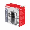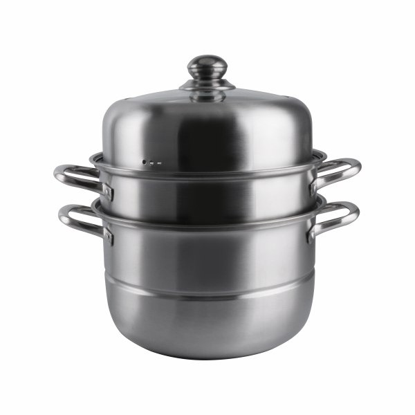 Мантоварка из нержавеющей стали. Объем мантоварки 15 л, объем нижней кастрюли 10 л, диаметр 28 см, 3 яруса, корпус из нержавеющей стали 410, толщина стенок кастрюли 0,4 мм, толщина стенок секции 0,4 мм, одиночное дно, крышка со вставкой из термостойкого стекла. Подходит для индукционных плит.