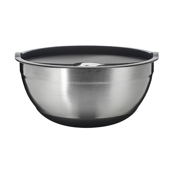 Миска с крышкой. Материал: нержавеющая сталь 201. Крышка из пищевого пластика. Миску удобно использовать для приготовления, хранения и транспортировки готовых блюд. Плотная крышка надолго сохранит свежесть продуктов внутри миски. Удобные клапаны облегчают открывание миски. Противоскользящее силиконовое основание обеспечит усточивость. Можно мыть в посудомоечной машине; материал: нержавеющая сталь 201, толщина стенки 0,5мм.