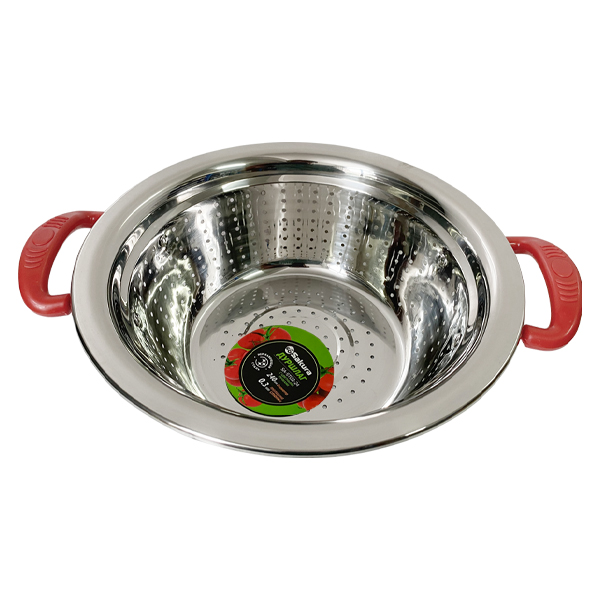 Дуршлаг, толщина стали: 0,3 мм; материал: нержавеющая сталь 201; упаковка - хенгтег, пакет.Дуршлаг изготовлен из высококачественной нержавеющей стали. Идеально подходит для процеживания макарон, мытья овощей и фруктов. Снабжен двумя пластиковыми ручками по бокам. Цвет ручек: микс (зеленый/желый/красный). Не рекомендуется мыть в посудомоечной машине. Станет вашим хорошим помощником на кухне на долгие годы.