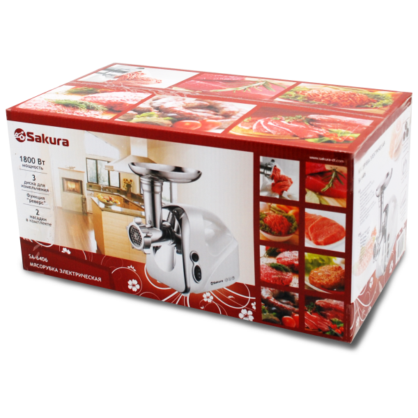 Мясорубка электрическая, 1800 Вт, с функцией реверса, насадками кеббе, для приготовления сосисок и тремя дисками в комплекте