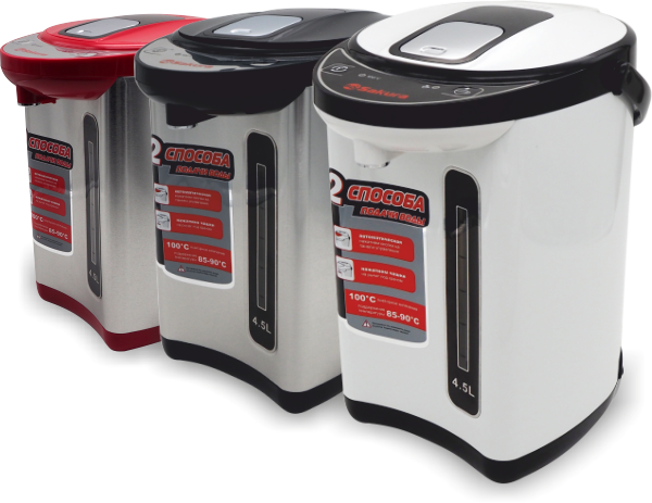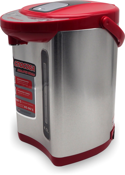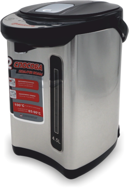 Чайник-термос с функцией кипячения и поддержания температуры на уровне 85-90ºС. Двойная защита от перегрева и включения без воды Два способа подачи воды. Поворот основания на 360º. Световые индикаторы режима работы.
