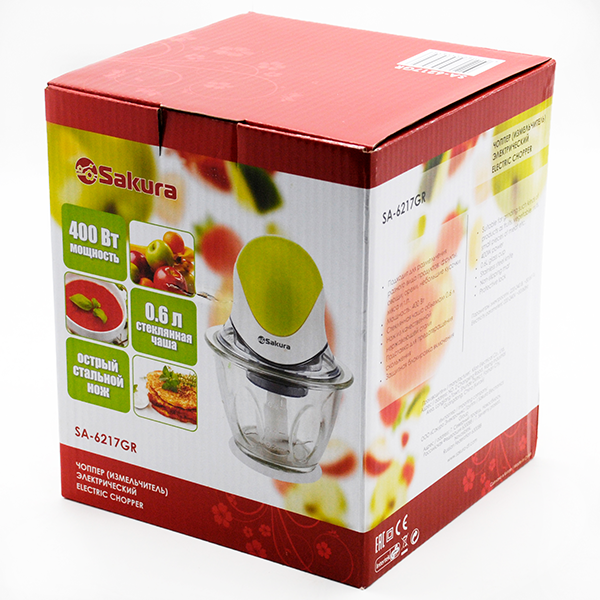 Чоппер, 400 Вт, стеклянная чаша 0,6 л, силиконовая подставка для предотвращения скольжения, защитная блокировка включения.